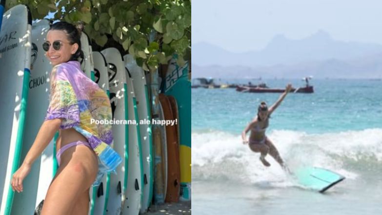 Dodała też, że mimo licznych upadków do wody, "złapała zajawkę". Nie przejmuje się tym, że surfowanie to nie jej żywioł, ponieważ na tym wyjeździe chce przede wszystkim "wyjść poza strefę komfortu".