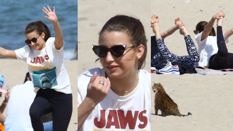 Julia Wieniawa robi fikołki na plaży w Sopocie i wypina pupę przy miauczącym kocie (ZDJĘCIA)
