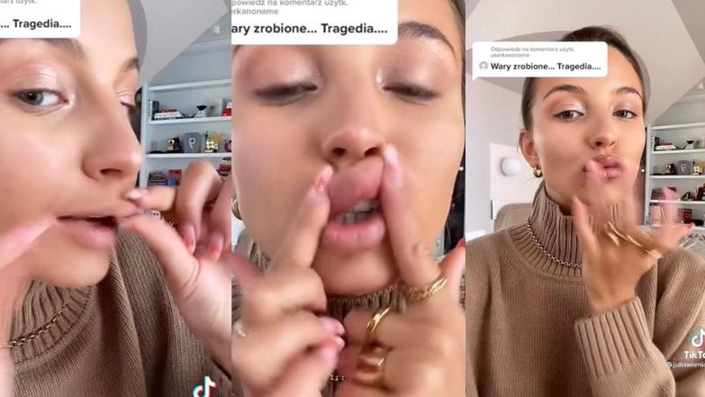 Już od dobrych paru tygodni Julia Wieniawa zdaje się toczyć zaciętą walkę z internautami, którzy próbują ze wszystkich sił wmówić jej korzystanie z botoksu, kwasiku i innych innowacji z zakresu medycyny estetycznej. Zamieszczony przez aktorkę na Instagramie post dementujący wszelkie domysły ciekawskich fanów najwyraźniej nie wystarczał. Podejrzenia wynurzyły się wkrótce na pozostałych platformach społecznościowych. Doprowadzona do skraju cierpliwości Julka postanowiła w końcu poświęcić sprawie osobnego tiktoka, w którym udowadnia, że jej usta są w pełni mobilne i niczym nieskrępowane.