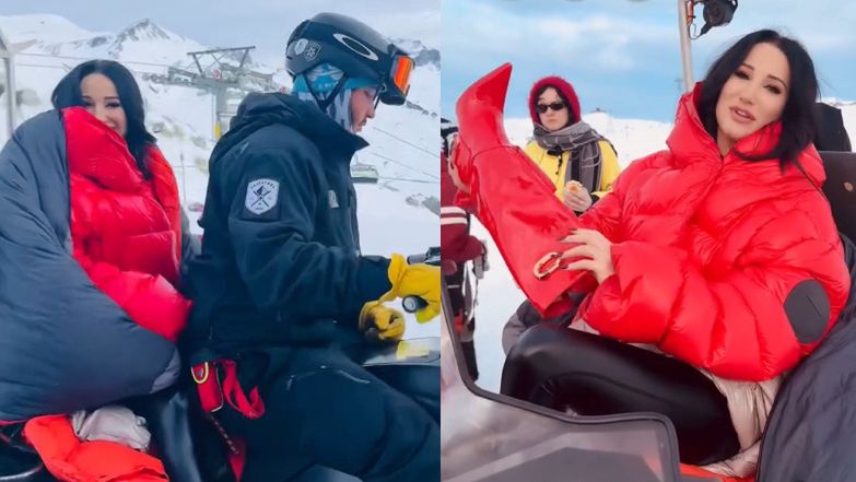 Justyna Steczkowska kroczy po śniegu w ryzykownych butach