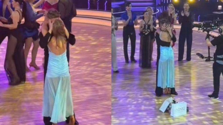 Przypomnijmy, że po każdym werdykcie, zwłaszcza gdy ktoś odpada, uczestnicy wspólnie tańczą i żegnają parę opuszczającą program. Tym razem Agnieszka Kaczorowska i Marcin Rogacewicz byli skupieni tylko na sobie. Zakochani tańczyli w samotności, tulili się i całowali na parkiecie, nie wymieniając słowa z kolegami i koleżankami. Do sieci trafiło nagranie. Widać na nim również, jak nieco zdezorientowane pozostały pary tańczą kilka metrów od nich. Według relacji naszej reporterki, która była na miejscu, po zakończeniu odcinka tancerka i aktor od razu uciekli za kulisy, a następnie udali się do auta.