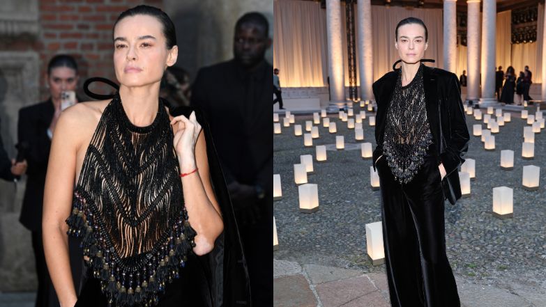 Kasia Smutniak w czerni eksponuje swoje wytatuowane plecy na pokazie Armaniego w Mediolanie