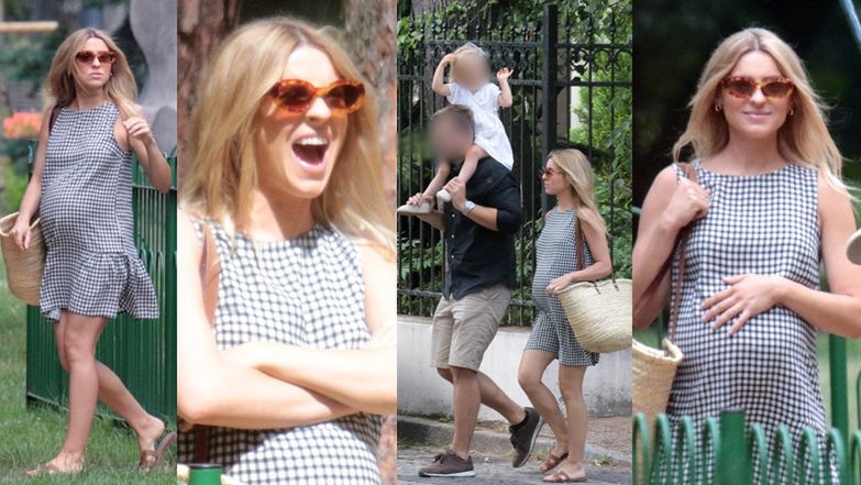 Kasia Tusk ze sporym brzuszkiem zażywa ruchu na rodzinnym spacerze (ZDJĘCIA)