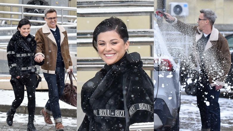 Katarzyna Cichopek i jej botki za 5,5 TYSIĄCA podziwiają z ciepłego auta pokaz odśnieżania w wykonaniu Macieja Kurzajewskiego (ZDJĘCIA)
