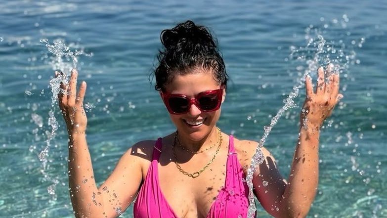 Serialowa Kinga Zduńska w środowe popołudnie zaserwowała nam kolejną porcję wakacyjnych kadrów. Tym razem możemy przyjrzeć się jej orzeźwiającej kąpieli morskiej w różowym stroju. Następnie pokazała się na plaży w jednolitej kolorystycznie letniej sukience.