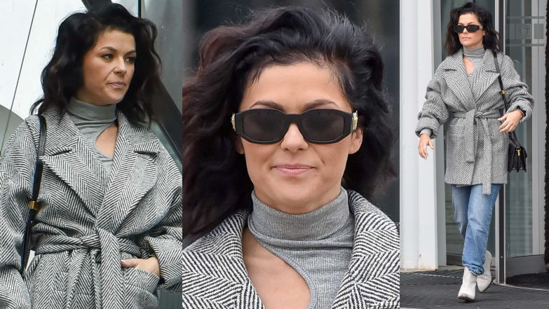 Tego dnia miała na sobie luźne jeansy, szary, przewiązywany w pasie krótki płaszcz i pasujące do niego botki. Mimo braku słońca Cichopek zdecydowała się także założyć na nos okulary przeciwsłoneczne.