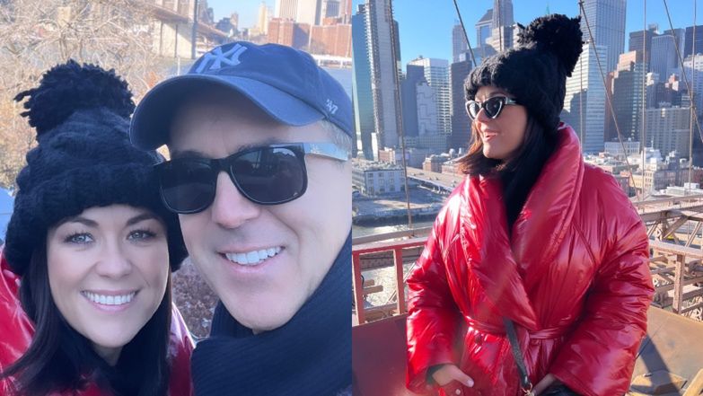 Nazajutrz zakochani urządzili sobie sesję zdjęciową w trakcie przemierzania opromienionego słońcem Nowego Jorku. 41-latka chętnie pozowała na tle dwupoziomowego Manhattan Bridge w błyszczącej czerwonej kurtce, czarnej wełnianej czapce z pomponem i okularach przeciwsłonecznych. Następnie oddawała się czułościom z Maciejem Kurzajewskim w otoczeniu imponujących wieżowców.