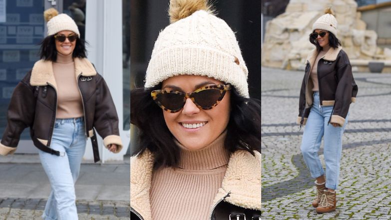 Studio TVP Cichopek opuściła w dżinsach i dopasowanym, beżowym golfie, na który narzuciła krótki kożuch w kolorze czekoladowego brązu. Zimową stylizację celebrytka uzupełniła czapką z futrzanym pomponem oraz oryginalnymi butami. Ukochana Macieja Kurzajewskiego postawiła na ocieplane botki na koturnie, z wiązaniami przywodzącymi na myśl uwielbiane przez celebrytki śniegowce. Szkoda tylko, że zapomniała o skarpetkach, bo spodnie nonszalancko podwinęła nad kostkę i tak przeparadowała przez parking.