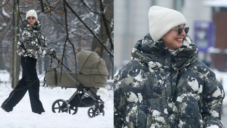 Łagodnie uśmiechnięta Katarzyna podczas spaceru zaprezentowała ciekawą stylizację. Do czarnych, szerokich spodni ze złotymi zamkami, wartych niemal 2,7 tys. złotych, dobrała designerską, puchową kurtkę z ciekawym, plamiastym printem. Na nogach Sokołowsiej pojawiło się sportowe obuwie, a na głowie ciepła czapka, która uchroniła ją przed "urokami" mroźnej pory roku. Dopełnieniem stylizacji były urocze okulary przeciwsłoneczne w kształcie serduszek.