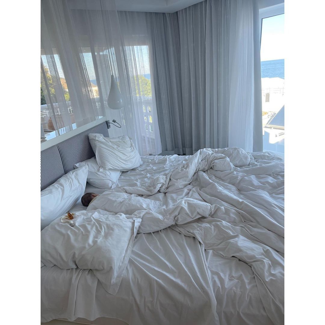 Wkrótce na profil reżyserki pokazów mody trafiło też zdjęcie z "leniwej niedzieli", na którym widzimy nie tylko widok z prywatnego apartamentu pary, lecz także ich synka, który leży na łóżku, zawinięty w kocyk i pogrążony w głębokim śnie. Następnego dnia Sokołowska pochwaliła się też ogrodzonym wejściem do prywatnej kwatery.