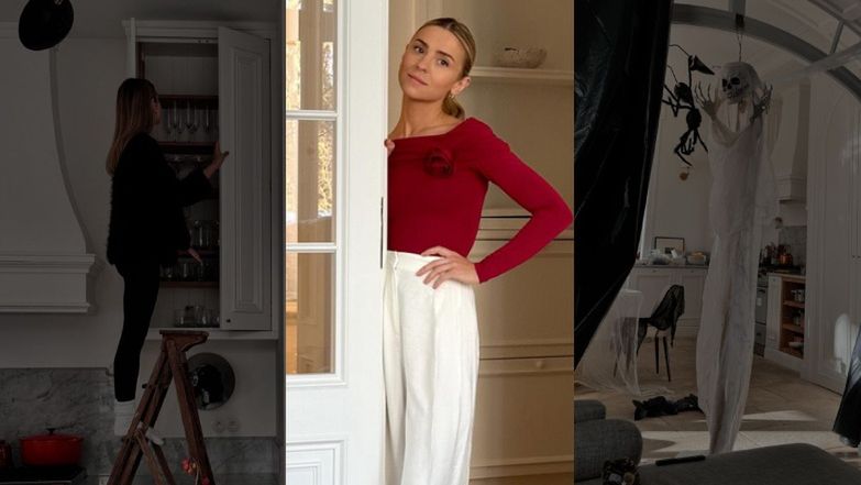 Tusk zdecydowała się też na nietypowe rozwiązanie i postawiła na wyjątkowo wysoko umieszczone szafki. Influencerka zaznaczyła, że musi sięgać po drabinę, chcąc wyciągnąć kieliszki ustawione na najwyższej półce w górnej szafce. Od razu dodała, że korzysta z nich wyłącznie dwa razy w roku.
