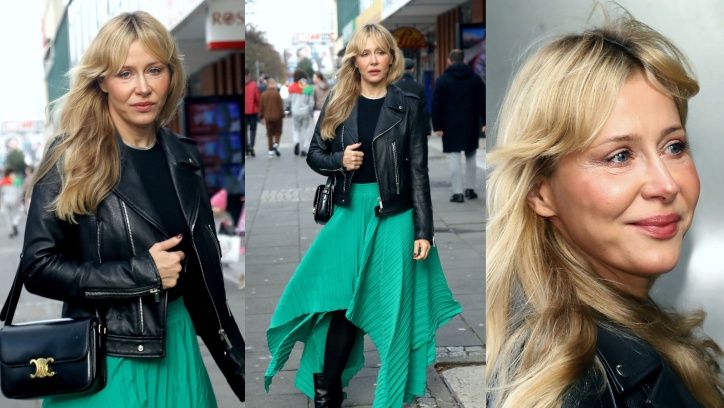 W sobotę celebrytka raz jeszcze zasiadła na kanapie śniadaniówki, gdzie prawiła o nowym rozdziale w swoim życiu. Po pojawieniu się na antenie TVN-u aktorkę czekała jeszcze tradycyjna już sesja pod studiem na ulicy Marszałkowskiej, do której Kasia podeszła profesjonalnie, prezentując fotografowi kilka wyćwiczonych póz i posyłając w stronę obiektywu delikatny uśmiech. Tego dnia lubująca się w modowych eksperymentach aktorka odziała się w falbaniastą, zieloną spódnicę o niestandardowym kroju, którą zestawiła ze skórzaną ramoneską, czarnym swetrem i botkami z metalowym noskiem. Celebrytka urozmaiciła "look" torebką Celine za ok. 18 tysięcy złotych.
