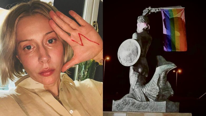 Ja kocham tęczę i tę na niebie (jak chyba my wszyscy) i tę na fladze. I nie przeszkadza mi na żadnym pomniku, bo najpierw jesteś człowiekiem, a potem czymkolwiek innym - napisała pod swoim najnowszym postem aktorka.