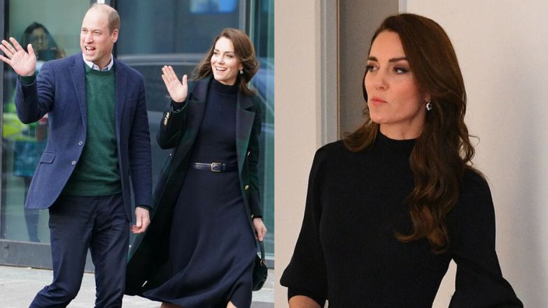 William i Kate rozsyłali uśmiechy i zdawali się być w doskonałych humorach. Księżna pokazała się w eleganckim wydaniu i wystylizowała się czarną wełnianą sukienkę, na którą zarzuciła płaszcz w kratę brytyjskiej marki Holland Cooper.