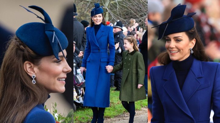 Podczas tradycyjnego spaceru Middleton zadała szyku w eleganckiej, zimowej stylizacji, na którą składał się długi, kobaltowy płaszcz, granatowe kozaki oraz fantazyjny kapelusz w nieco ciemniejszym kolorze. Kreację dopełniły diamentowe kolczyki z szafirem, które należały kiedyś do Lady Di.