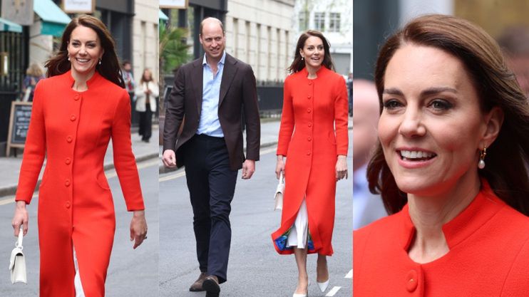Kate Middleton w czerwonym płaszczu emanuje elegancją podczas wypadu z Williamem na miasto. Ikona stylu? (ZDJĘCIA)