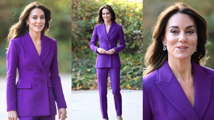 W środę zaprawioną w bojach matkę trójki dzieci czekały kolejne książęce zobowiązania. Kate była tego dnia gospodarzem krajowego sympozjum Shaping Us w londyńskim Muzeum Designu, gdzie poproszono ją o wygłoszenie inspirującej mowy. 41-latka doskonale wie, że wymaga się od niej, by zawsze prezentowała się nienagannie i ze smakiem. Księżna, jak zwykle spełniła oczekiwania wielbicieli roylasów i odziała się w elegancki, fioletowy garnitur Emilia Wickstead wart 15 tysięcy złotych, do którego dopasowała granatowe, aksamitne czółenka Gianvito Rossi za 3 tysiące złotych. Istotnym elementem stylizacji były diamentowe kolczyki z szafirem, które należały kiedyś do Lady Di.