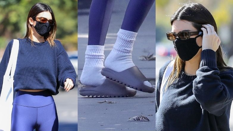 Na siłownię Kendall wybrała się rzecz jasna w sportowej stylizacji. Na trening celebrytka założyła prostą czarną bluzę oraz podkreślające jej sylwetkę granatowe legginsy. Oblicze modelka skryła za parą ciemnych okularów. Jenner starannie zadbała także o komfort swoich stóp. Jennerka maszerowała na trening w grubych białych skarpetach, do których dobrała klapki marki Yeezy. Ceny niepozornie wyglądających butów Kanye Westa sięgają nawet ponad 7 tysięcy złotych.