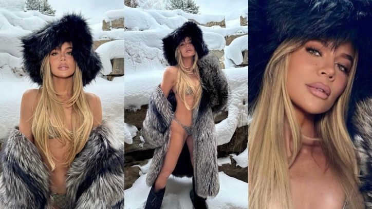 Khloe Kardashian pozuje w bikini za 3 tysiące i wielkim futrze, narażając podrasowane chirurgicznie wdzięki na ODMROŻENIE (ZDJĘCIA)