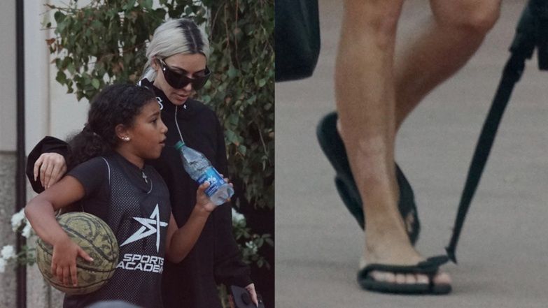 Kim Kardashian obnaża PRZEBARWIENIA NA NOGACH, odbierając dzieci z koszykówki (ZDJĘCIA)