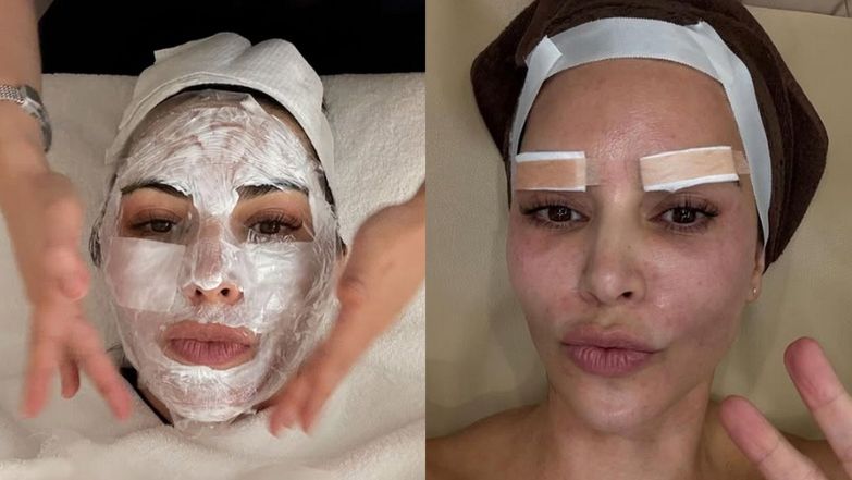 Na najnowszych zdjęcia Kim prezentuje eksperymenty, które mają poprawić jej wygląd. Celebrytka pokazała się z taśmą na brwiach i białą maską na twarzy. Wszystko z pozoru przypomina profesjonalny zabieg kosmetyczny, jednak uwagę fanów przykuł intensywnie fioletowy płyn, który gwieździe wstrzyknięto w ramię.
