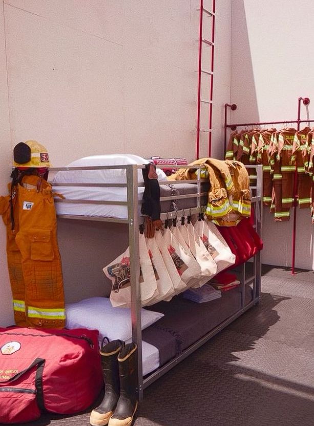 Na tak oryginalnej imprezie goście otrzymali spersonalizowane płaszcze bunkrowe, które zostały ozdobione napisami z ich imionami. Była też piñata z wozem strażackim i stół deserowy wypełniony udekorowanymi ciastkami, babeczkami i ciasteczkami.