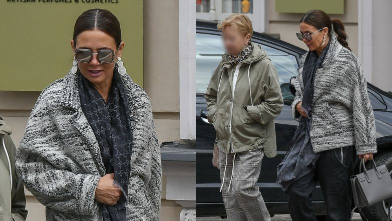 Stołeczni paparazzi napotkali Kingę Rusin i jej mamę w jednej z popularnych kawiarni. Następnie panie wybrały się na krótki spacer, a kolejnym przystankiem na ich drodze była apteka. Prezenterka przemierzała ulice Warszawy w dość zwyczajnej stylizacji. Miała na sobie ciemne, szerokie jeansy, białe trampki i szarawą kurtkę. Ekstrawagancją powiało jednak, dzięki dodatkom - 53-latka uzupełniła codzienny "look" sporawymi kolczykami, okularami przeciwsłonecznymi, dobrze znaną z ostatnich wyjść szarą torebką Saint Laurent za 12 tysięcy złotych oraz perfekcyjnie dopasowanym szalikiem Gucci za około 2,5 tysiąca złotych.