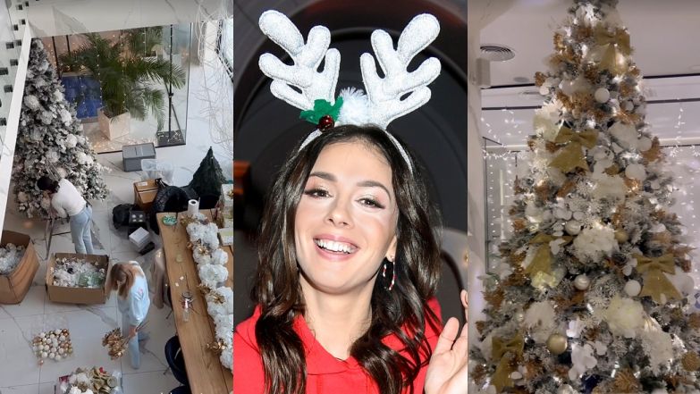 Oglądając opublikowane przez celebrytkę nagranie, widzimy, że w tym roku w jej czterech kątach dominują biel oraz złoto. Poza ubraniem choinki Halejcio udekorowała na bogato okazałe okna domu, schody oraz olbrzymi stół.