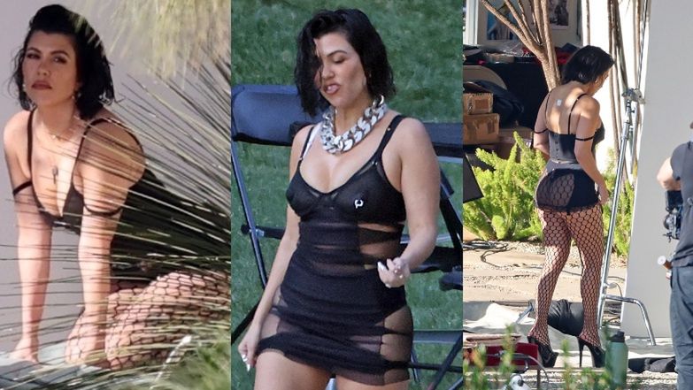 Nie inaczej było i tym razem, gdy paparazzi przyłapali celebrytkę na planie sesji zdjęciowej. Kardashianka pozowała przed obiektywem w kilku efektownych stylizacjach, a każda z nich odkrywała więcej ciała niż poprzednia. Fotograf uwiecznił 42-latkę w ekstremalnie krótkiej sukience, do której w kolejnych ujęciach dołożone zostały kabaretki. Kształty celebrytki podkreśliło również czerwone aksamitne body.