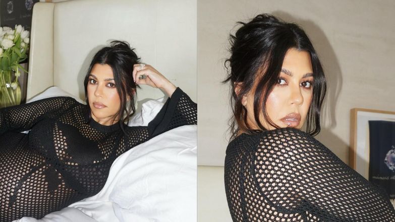 Kourtney Kardashian odsłania ciążowe kształty w siateczkowym kostiumie. Poród już niebawem! (ZDJĘCIA)