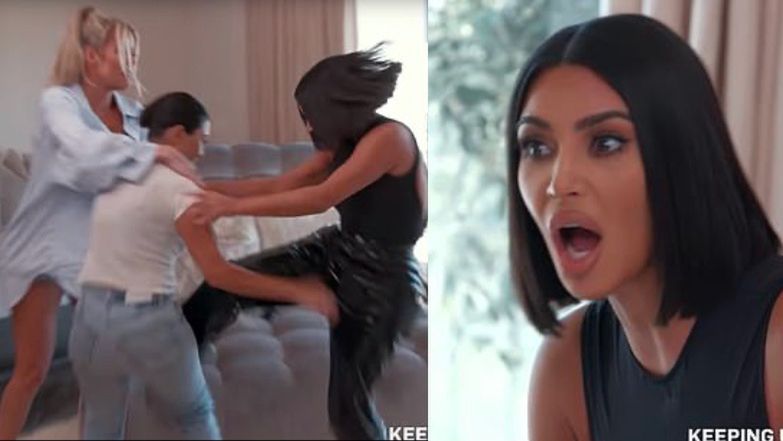Khloe próbuje rozdzielić siostry, ale te rzucają się na siebie, kopiąc i szarpiąc za włosy. Zwieńczeniem szarpaniny jest spoliczkowanie Kim przez Kourtney.