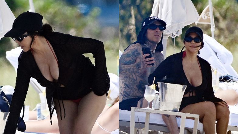 Kourtney Kardashian wygrzewa się na plaży u boku Travisa Barkera 7 miesięcy po porodzie (ZDJĘCIA)