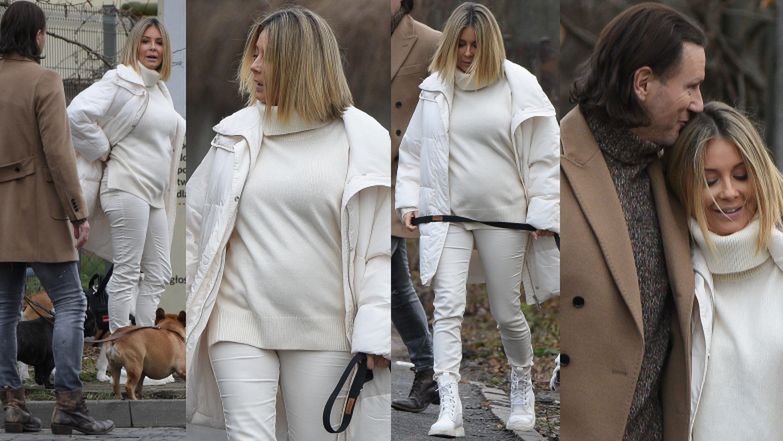 Kremowa Małgorzata Rozenek eksponuje coraz większy ciążowy brzuszek na spacerze z psami (ZDJĘCIA)