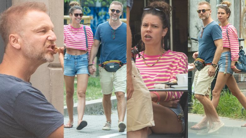 Po skończonym posiłku udali się na spacer stołecznymi ulicami. Tego dnia oboje mieli na sobie letnie stylizacje. Podczas gdy Krystian przyodział granatowy T-shirt, jasne krótkie spodenki i trampki, jego ukochana zaprezentowała się w krótkim pasiastym topie odsłaniającym jej umięśniony brzuch, jeansowych szortach i klapkach.