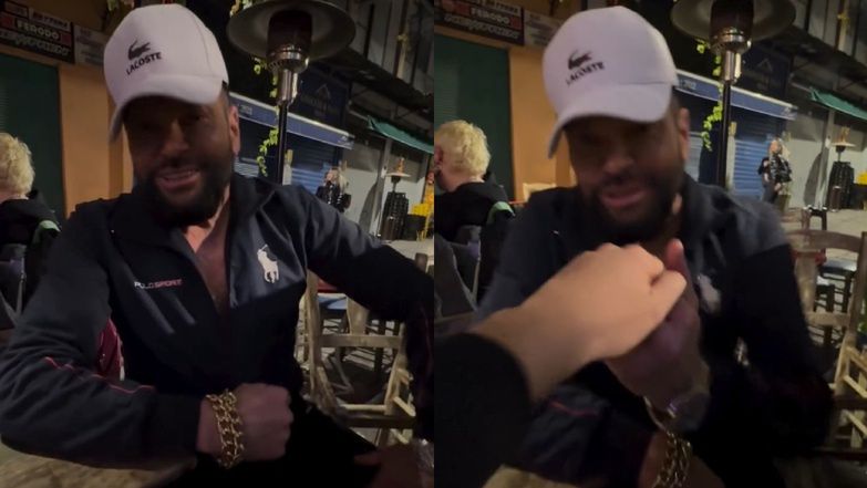 64-letni celebryta swoim zwyczajem ruszył w miasto w markowym dresie i kosztownej czapce z daszkiem, nie zapominając rzecz jasna o stałym punkcie każdego outfitu, czyli ociekającej złotem bransolecie. Nieskrępowany obecnością innych osób Rutkowski padł na kolana przed swoją wybranką serca. Wcześniej jednak niczym prawdziwy macho wyciągnął oparcie z jednego z krzeseł, które posłużyło mu za ochronę przed pobrudzeniem swych drogocennych spodni.