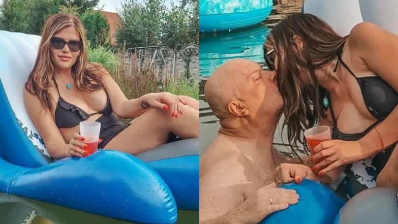 Ukochana lidera zespołu Big Cyc nieraz chwaliła się publicznie wspólnymi zdjęciami. Dziś jej instagramowy profil został wzbogacony o relację z upalnej środy, którą spędzili na świeżym powietrzu. Fotografie opatrzone zwięzłym komentarzem "Chill" pokazują radośnie taplającego się w wodzie Krzysztofa i jego żonę okupującą unoszący się na tafli wody dmuchany materac w drzewno-trawiastym anturażu. Małżonkowie pokusili się nawet o uwiecznienie soczystego buziaka.