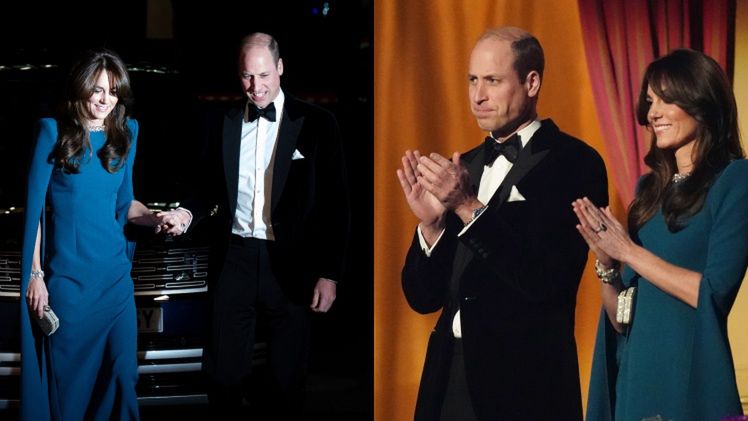 Tego dnia Księżna Kate zadała szyku w dopasowanej turkusowej sukni z wydłużonymi rękawami do ziemi. W kwestii dodatków Middleton zdecydowała się na srebrną kopertówkę, masywny diamentowy naszyjnik, kolczyki i bransoletkę z tego samego kompletu oraz szpilki w kolorze kreacji. William zaprezentował się w granatowej marynarce, grafitowych spodniach i białej koszuli. Książę uzupełnił swoją stylizację połyskującymi pantoflami oraz muchą.