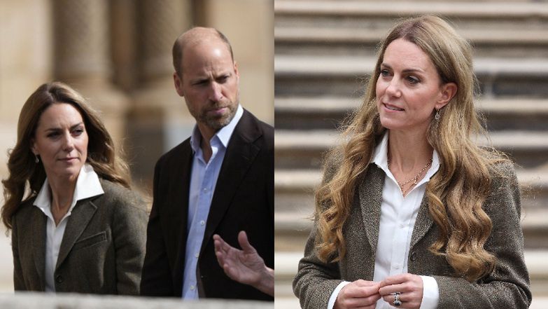 Podczas pierwszego od dłuższego czasu partycypacyjnego wyjścia księżna włożyła czarne garniturowe spodnie, do której dopasowała brązową marynarkę i klasyczną białą koszulę. Szczególną uwagę przyciąga jednak odmieniona fryzura Kate. Synowa króla Karola III podczas wizyty u fryzjera postawiła na znacznie jaśniejszy, blond kolor włosów niż zwykle.