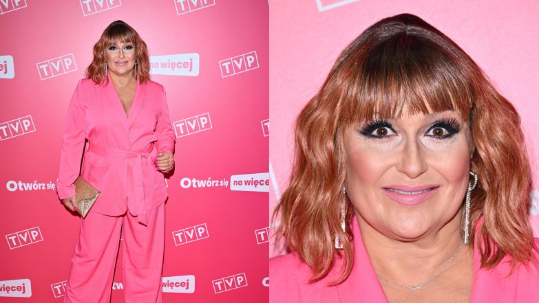 Katarzyna Skrzynecka dołączyła do grona gwiazd, które pojawiły się podczas prezentacji wiosennej oferty programowej Telewizji Polskiej. Gwiazda odziała się w różowy zestaw i zaprezentowała odmieniony kolor włosów.