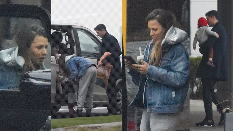Robert trzymał na rękach Laurę, Klara szła przodem. Za nimi Anna zerkała w telefon.