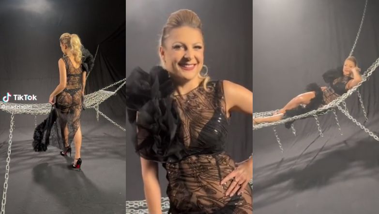 W niedzielę Narożna opublikowała na TikToku nagranie z zakulisowymi ujęciami z nowego teledysku. We wspomnianym wideo celebrytka pozuje wystrojona w sukienkę z przezroczystego materiału, która nie pozostawiła zbyt wiele dla wyobraźni. I tak fani Narożnej mogli ujrzeć, jak wokalistka wyleguje się na metalowym hamaku i paraduje po planie klipu, przy okazji eksponując nie tylko nienaganną sylwetkę, lecz również bieliznę.