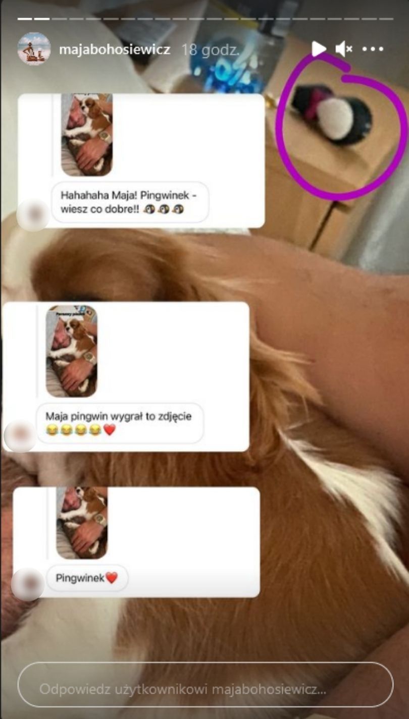Maja pokazała także wiadomości fanek, którym nie umknął leżący na szafce masażer w kształcie pingwina.