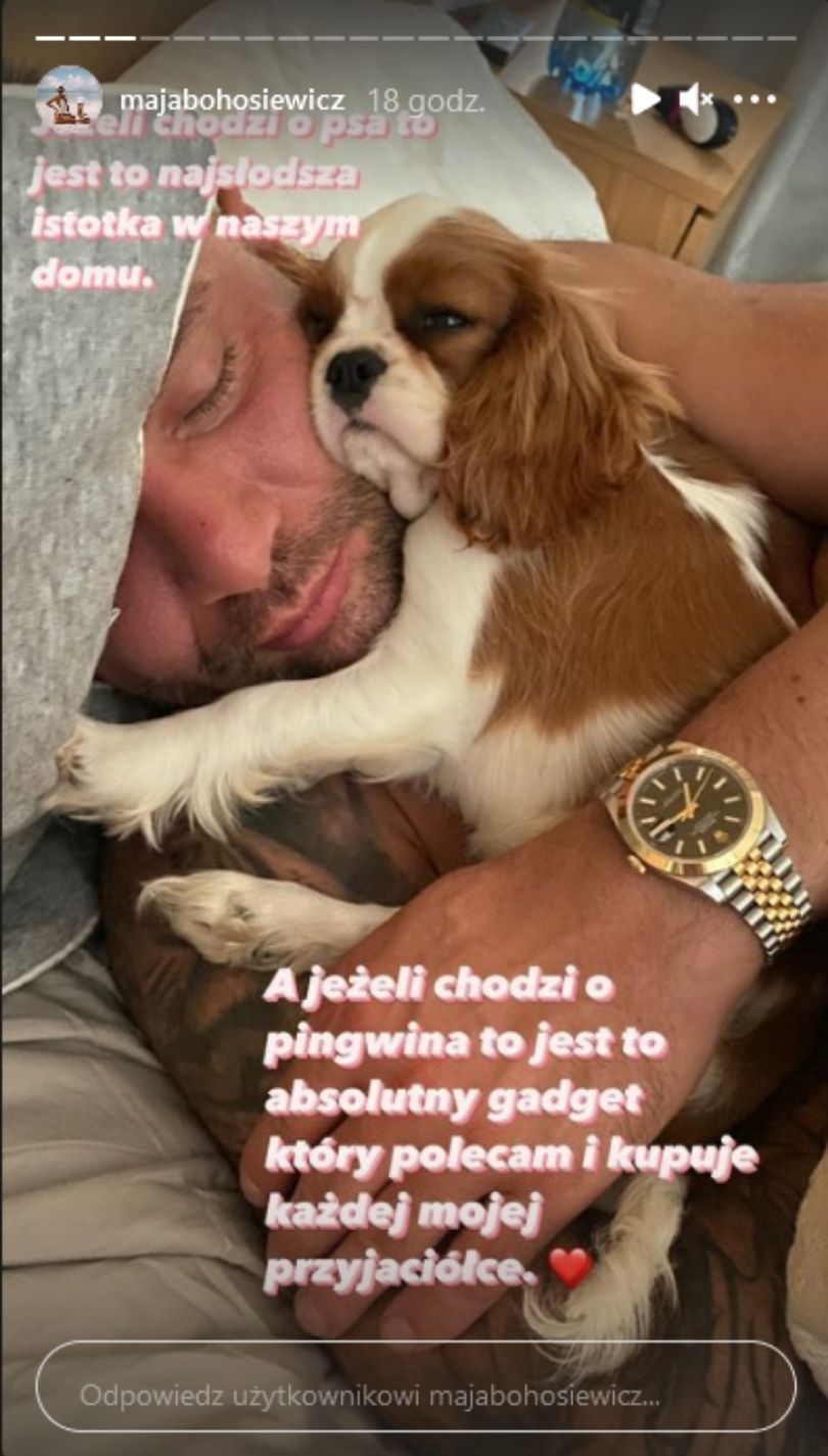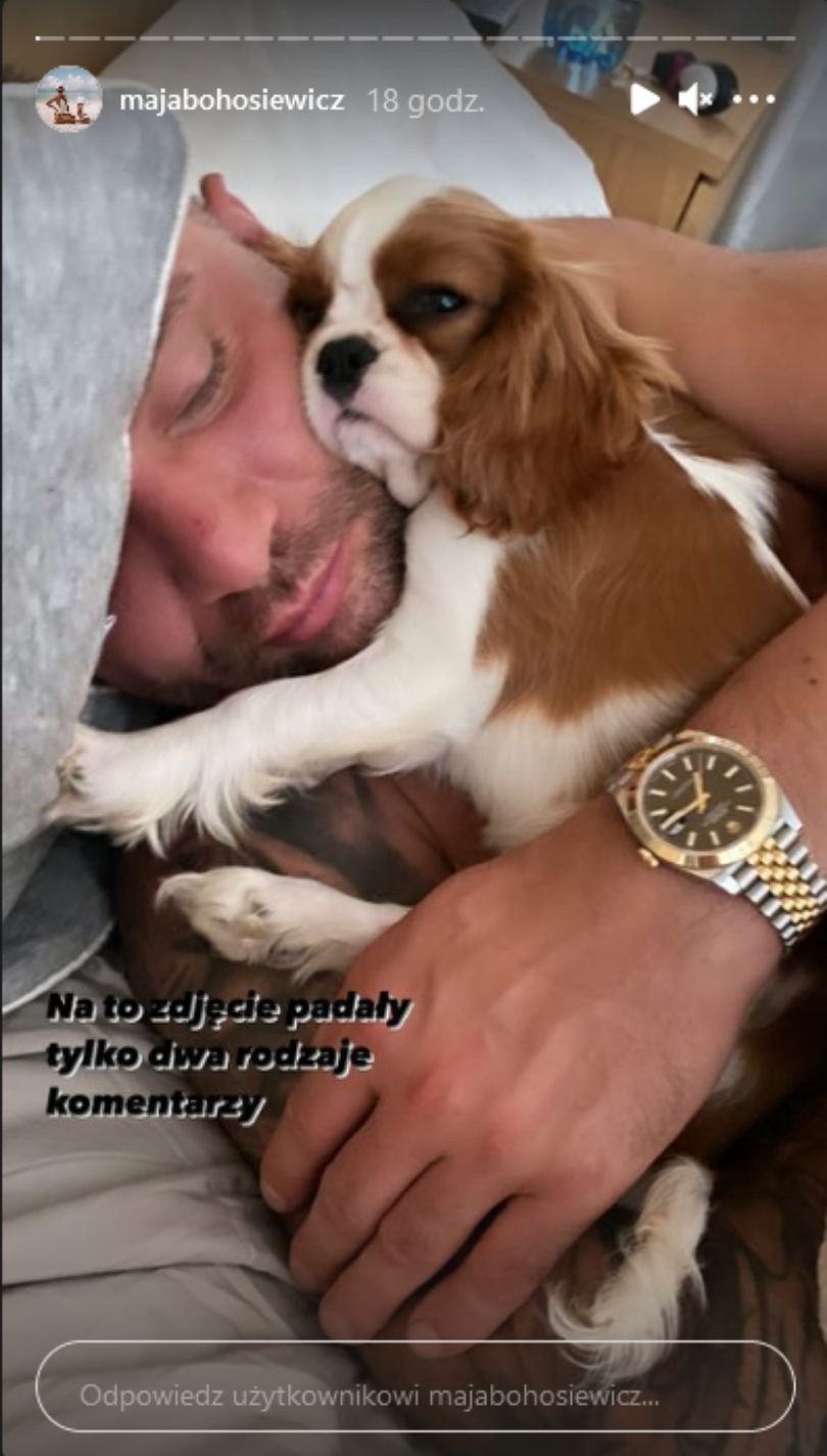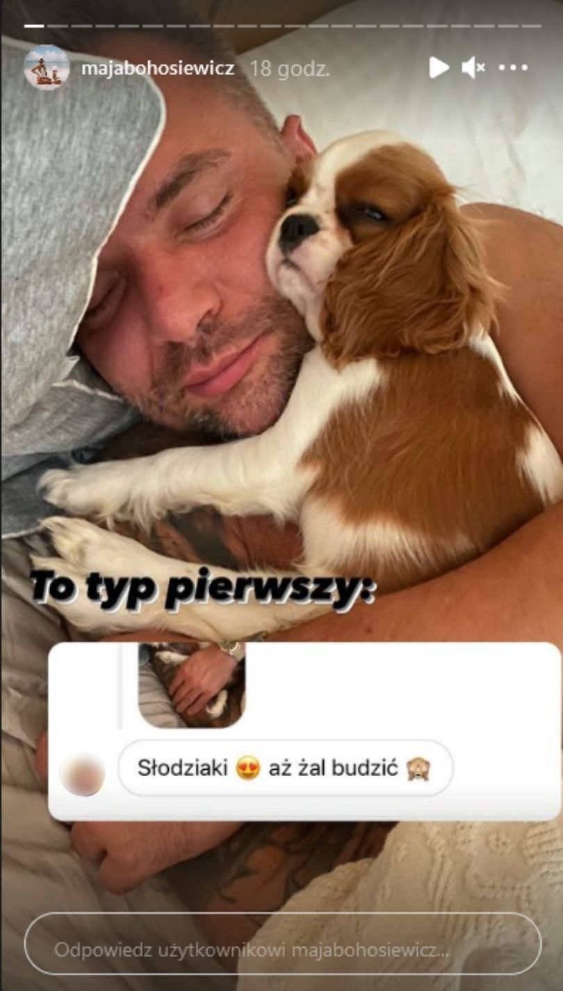 W piątek Maja Bohosiewicz postanowiła zaprezentować obserwatorom uroczy rodzinny obrazek i udostępniła na Instastories zdjęcie męża drzemiącego z ich pieskiem w ramionach. Przy okazji celebrytka zdradziła, że jej wpis podzielił internautów na dwa obozy. Niektórzy rozpływali się nad widokiem śpiącego z pupilem ukochanego Bohosiewicz. Inni dostrzegli natomiast w tle erotyczny gadżet.