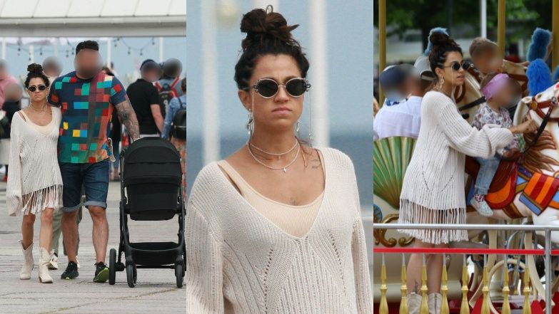 Ubrana w oversize'owy sweter z frędzlami oraz beżowe kowbojki Hyży beztrosko przemierzała kolejne metry sopockiego molo, korzystając z uroków nadmorskiego klimatu. Partner celebrytki prowadził wózek z ich najmłodszą pociechą, Maja doglądała zaś starszej córki, Antoniny. Po opuszczeniu molo cała rodzina maszerowała sopockim deptakiem, w pewnym momencie Maja postanowiła natomiast zafundować starszej córce nieco atrakcji i wraz z nią wybrała się na przejażdżkę karuzelą.