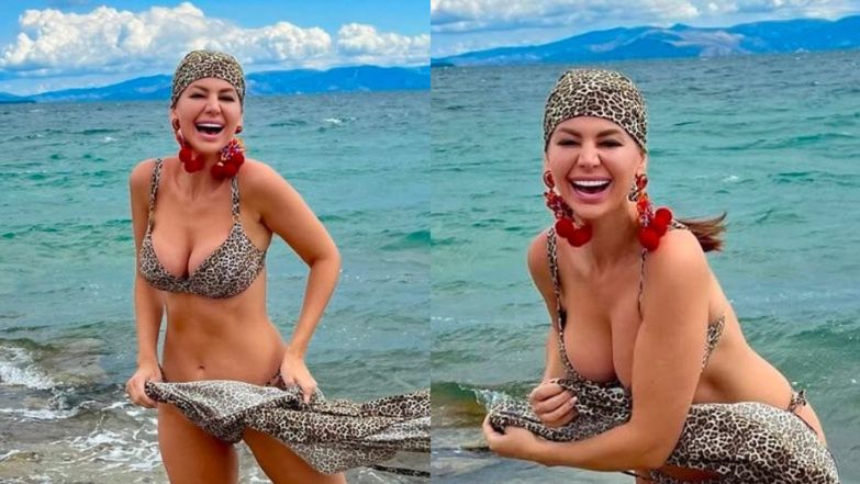 Maja Rutkowski wyłania się z wody w panterkowym bikini. Petarda?