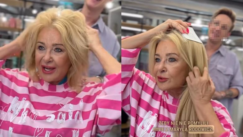 Musimy odświeżyć kolor, zrobić odrosty, większą ilość włosów, bo teraz będę tańczyć tango - instruuje fryzjera.