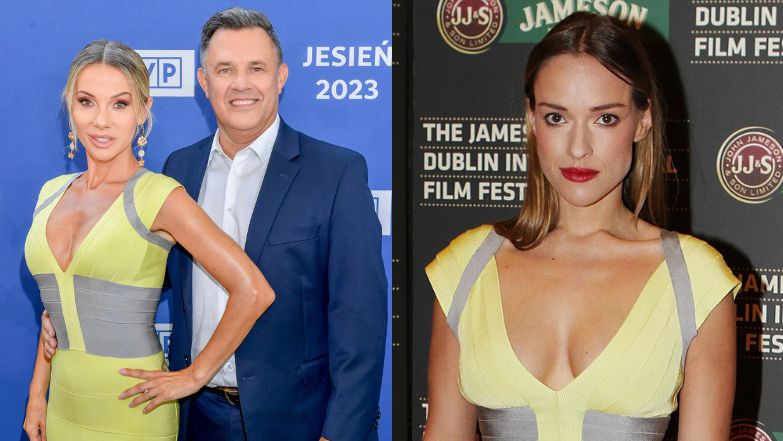 Opczowska na prezentacji ramówki TVP pojawiła się w podkreślającej sylwetkę żółtej kreacji z elementami szarego materiału w talii i na ramionach. Sukienkę z głębokim dekoltem celebrytka uzupełniła długimi kolczykami oraz przezroczystymi klapkami na obcasie. Jeśli wydawało się Wam, że gdzieś już widzieliście kreację Opczowskiej, to wcale nie było to mylne wrażenie. Sukienkę, w której prezenterka paradowała po ściance z logo TVP, już ponad dekadę temu można było podziwiać na innej polskiej celebrytce i to w dodatku na zagranicznych salonach.