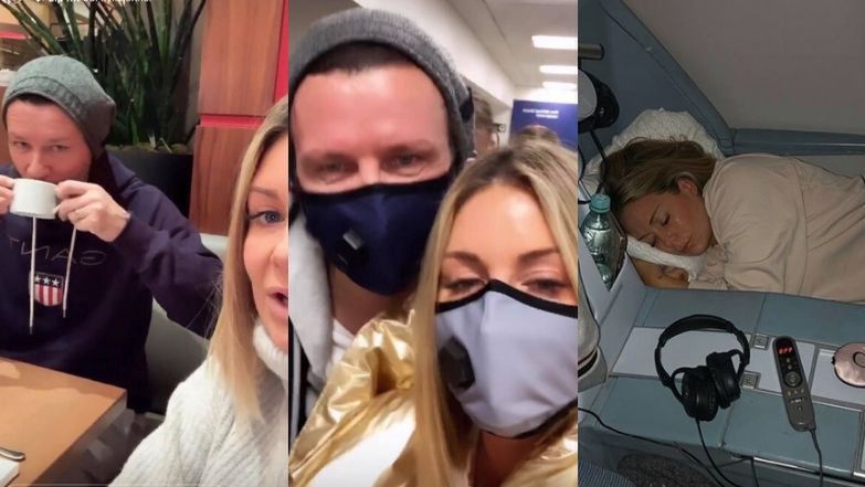 Uzbrojeni w maseczki ochronne Małgorzata Rozenek i Radosław Majdan relacjonują podróż do Nowego Jorku: "Zadbałem o wygodę mojego ciążowego Pysia"