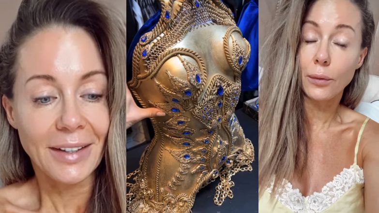 (...) Kasia, która bardzo dużo pracuje za granicą i upominało się o nią Hollywood, tworzy przepiękne projekty, dba o każdy szczegół - przekonuje celebrytka i pokazuje dowód na to, że czuła się w zbroi komfortowo: