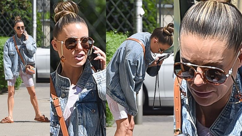Teraz z kolei paparazzi wypatrzyli Małgorzatę, gdy paradowała po mieście w krótkich legginsach. Do tego dobrała jeansową kurtkę oversize oraz sandały. Całości dopełniały niewielka torebka i okulary przeciwsłoneczne z łańcuszkiem. Na głowie 43-latki sterczał okazały kok.